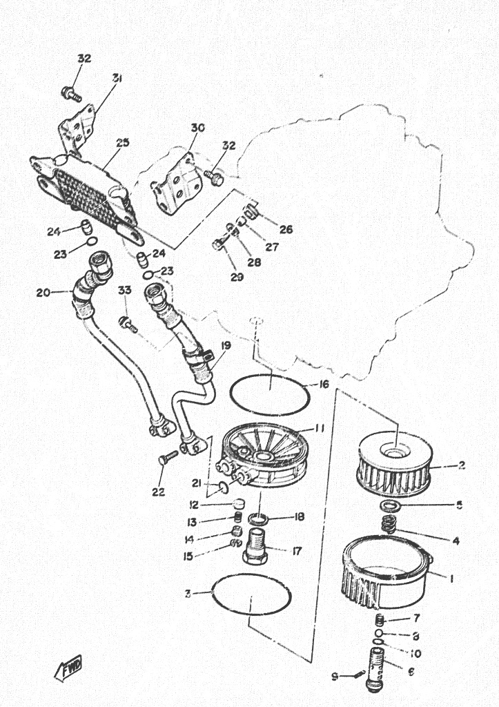 Ölfilter, Ölfiltergehäuse, Ölkühler (nur XS850), usw.